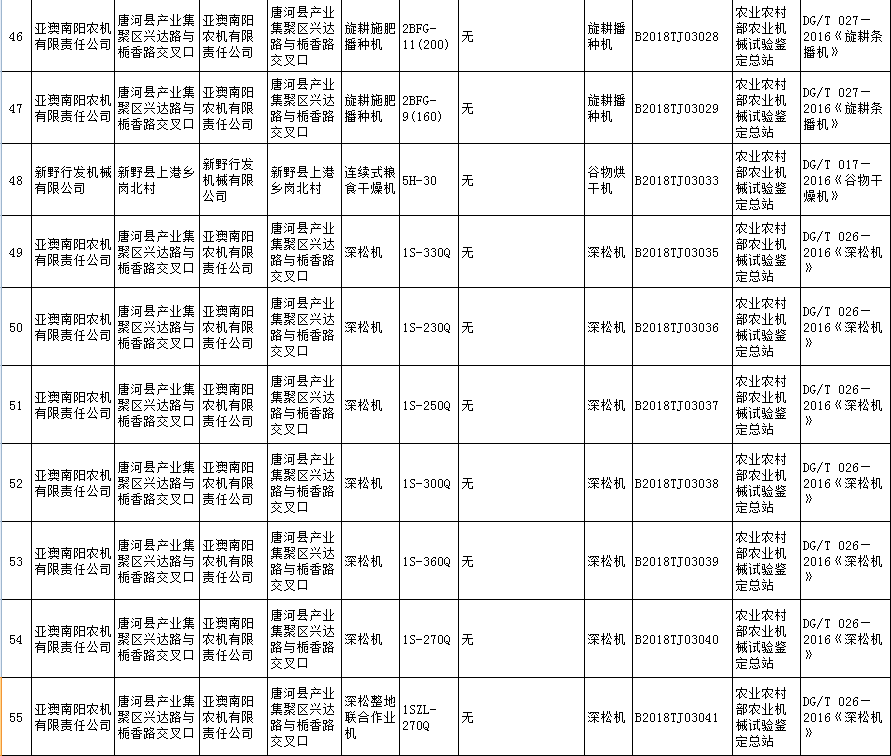 根據(jù)農(nóng)業(yè)部農(nóng)業(yè)機械試驗鑒定總站2018年第五批部級農(nóng)機推廣鑒定結(jié)果的公示,9個型號的機型全部通過農(nóng)機鑒定總站的批準。