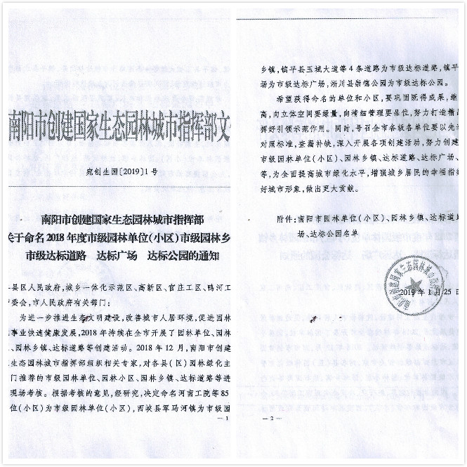 此次我公司喜獲 “南陽市園林式單位”的榮譽稱號,是市級主管部門對我公司優(yōu)美的綠色生態(tài)環(huán)境和園林綠化建設維護工作的高度肯定。我們會以此為新起點,不斷加強生態(tài)環(huán)境建設和綠化養(yǎng)護管理工作,使廠區(qū)綠化特色更加顯現(xiàn),廠區(qū)綠化品位更上檔次,打造出更加優(yōu)美的生態(tài)園林廠區(qū)環(huán)境,為“國家綠色工廠”做好基礎。