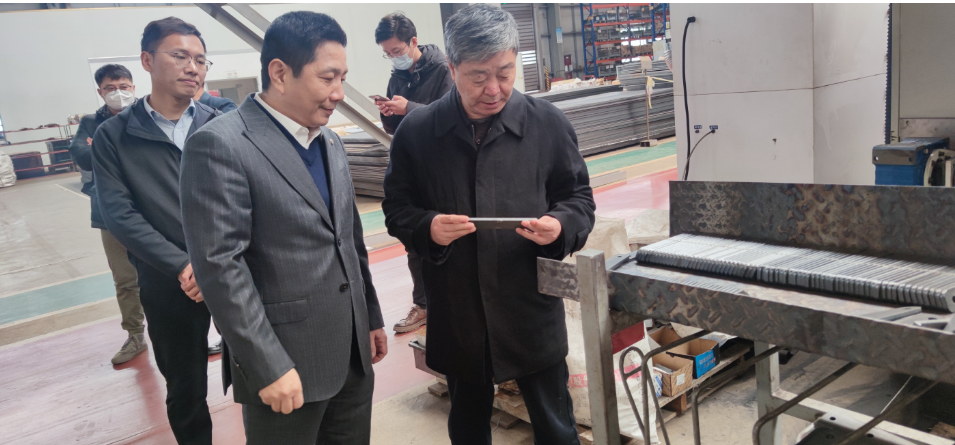 領(lǐng)導(dǎo)一行先后參觀了公司產(chǎn)品展廳、制造現(xiàn)場等區(qū)域,在總經(jīng)理的介紹下,領(lǐng)導(dǎo)們對公司產(chǎn)品智能制造過程、生產(chǎn)管理模式、綠色工廠體系發(fā)展、技術(shù)研發(fā)、知識產(chǎn)權(quán)等做了詳細了解,隨后進行了會談。