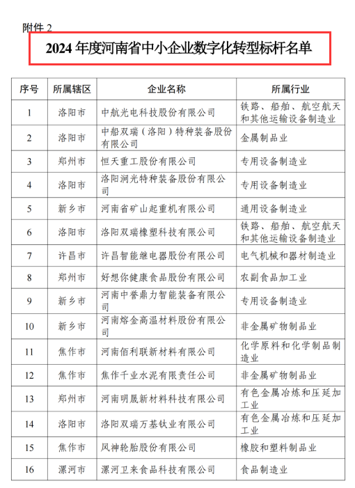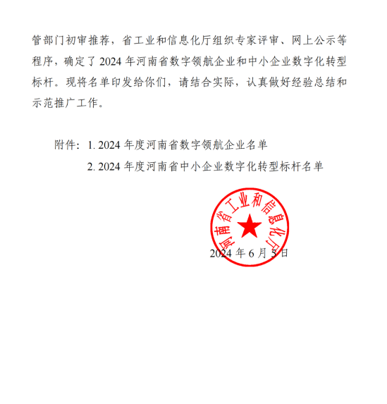 河南省省級中小企業(yè)數(shù)字化轉(zhuǎn)型標(biāo)桿企業(yè)